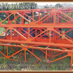 Vận thăng nâng hàng 1000Kg – 39m gồm có: Tời kéo JK1.6 động cơ 7.5KW – 380V; 13 đốt loại 3m/đốt; bàn nâng hàng; tủ điện điều khiển; tay bấm dài 10m; thanh giằng ngang, đế + puly đỉnh; 02 công tắc hành trình an toàn; dầu mỡ; bu lông ốc vít đầy đủ. Hotline, Zalo: 098 890 3439 – 097 145 3439 – 098 539 9900
